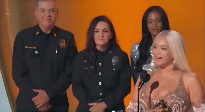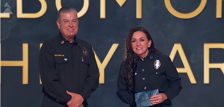 我想感谢并表彰所有保护我们安全的消防员们,她开始说道,提到了颁发奖项的洛杉矶县消防局成员。 我感到非常满足和荣幸,她继续说。这已经过去了很多年,我只想感谢格莱美奖、每一位词曲作者、每一位合作者、每一位制作人以及所有的辛勤工作。