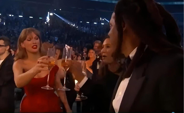 当碧昂斯发表完感言后,泰勒斯威夫特拿起手中的酒杯,用力地与身旁的人碰杯。从她那略显急促的动作中,能够明显感觉到她试图借此来缓和当下这略显尴尬的气氛。她的眼神中带着一丝急切的期待,似乎希望通过这样的互动,能让自己从这微妙的情绪中解脱出来。